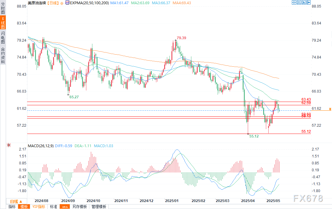 周五(5月16日),WTI原油期货价格小幅上涨,交易员们努力打破连续两天的下跌态势,并在前期涨幅在技术阻力位附近失去动力后,重新评估未来走势。本周早些时候,WTI飙升至63.43美元,但在63.20美元的50日移动平均线处遭遇强劲阻力,同时来自62.59美元这一长期枢轴点的额外压力也对其造成影响。