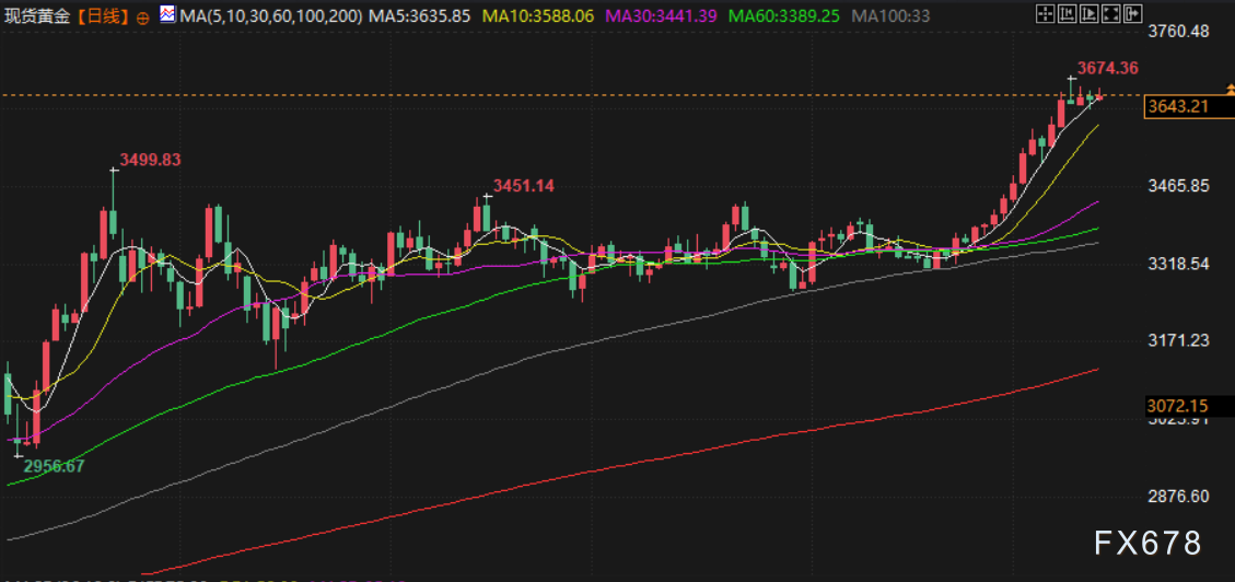 现货黄金报每盎司3648.55美元,上涨0.4%,接近周二创下的3673.95美元的纪录高位,周线连续第四周上涨,本周上涨1.56%。12月交割的美国期金收高0.3%,结算价报3686.40美元。今年迄今为止,金价已经大涨39%。