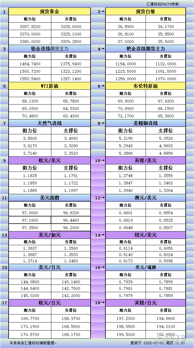 XM官网官网7月3日亚市更新支撑阻力:18品种支撑阻力(金银铂钯原油天然气铜及十